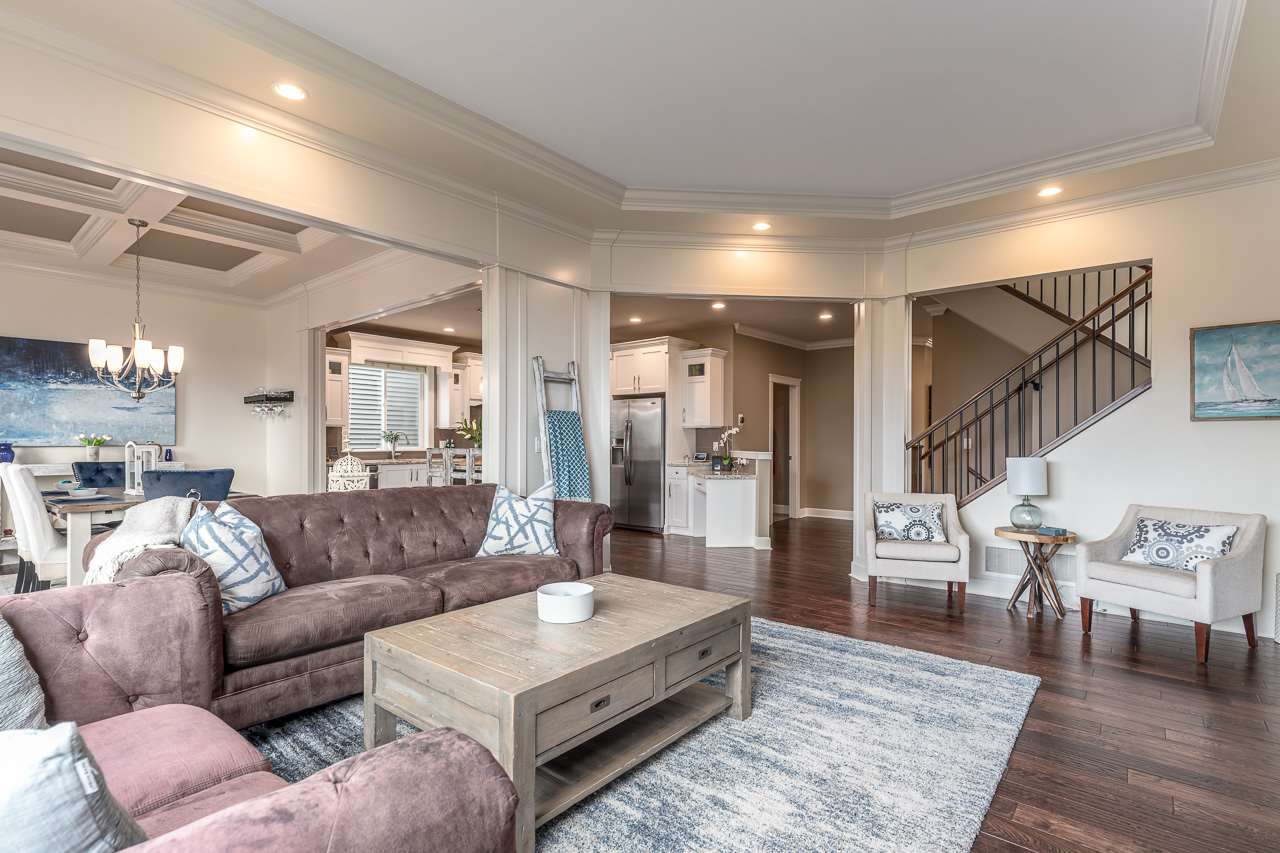 Designer dream home with southwest views! This 3,808sf 5-bed + den/office, 3.5 bath home is loaded w/ luxury & designer touches. Gorgeously appointed with classic styling, stone mantle, coffered ceilings & wainscoting in a spacious, bright & functional open-concept layout. The large entertainer’s kitchen features s/s apps, gas range, white shaker cabinets, granite island, large pantry & dining area - perfect for elegant dinner parties. 4 beds upstairs including a sensational master suite - large enough for additional sitting area and a cozy fireplace, large walk-in closet, and elegant spa-inspired ensuite w/ double sinks & corner soaker tub. Fully finished walkout basement w/ large rec room, bedroom & full bath PLUS a one-of-a-kind freestanding clubhouse & jungle gym for the kids!